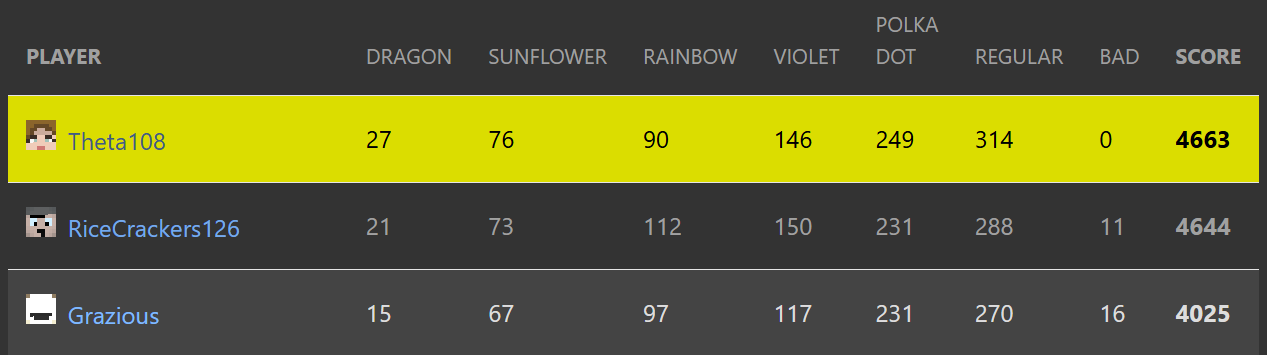 Special mention to RiceCrackers for an incredibly close second place.